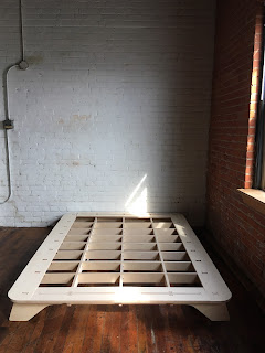 While I don't recommend making your own mattress (it's exasperating), you can buy a natural futon or wool mattress online. I like the concept and minimalist design of the Floyd bed, but since I didn't want to roll up my mattress everyday, I needed a frame it could breathe on. Years ago, I saw the Trestle CNC bedframe on Pinterest. Its sturdy slot together construction acts like a skeleton, requiring no tools or screws for assembly, and it's portable, packing flat (I can fit all the pieces for my queen size bed in my car- see my Instagram story highlights for video). To make one yourself, download and take to a makerspace, fab lab, or woodworking shop with a CNC big enough for a 4x8 sheet of plywood (the folder consists of a bunch of files for each size- these are layers- and what's essentially a drawing- that's the CAD file).